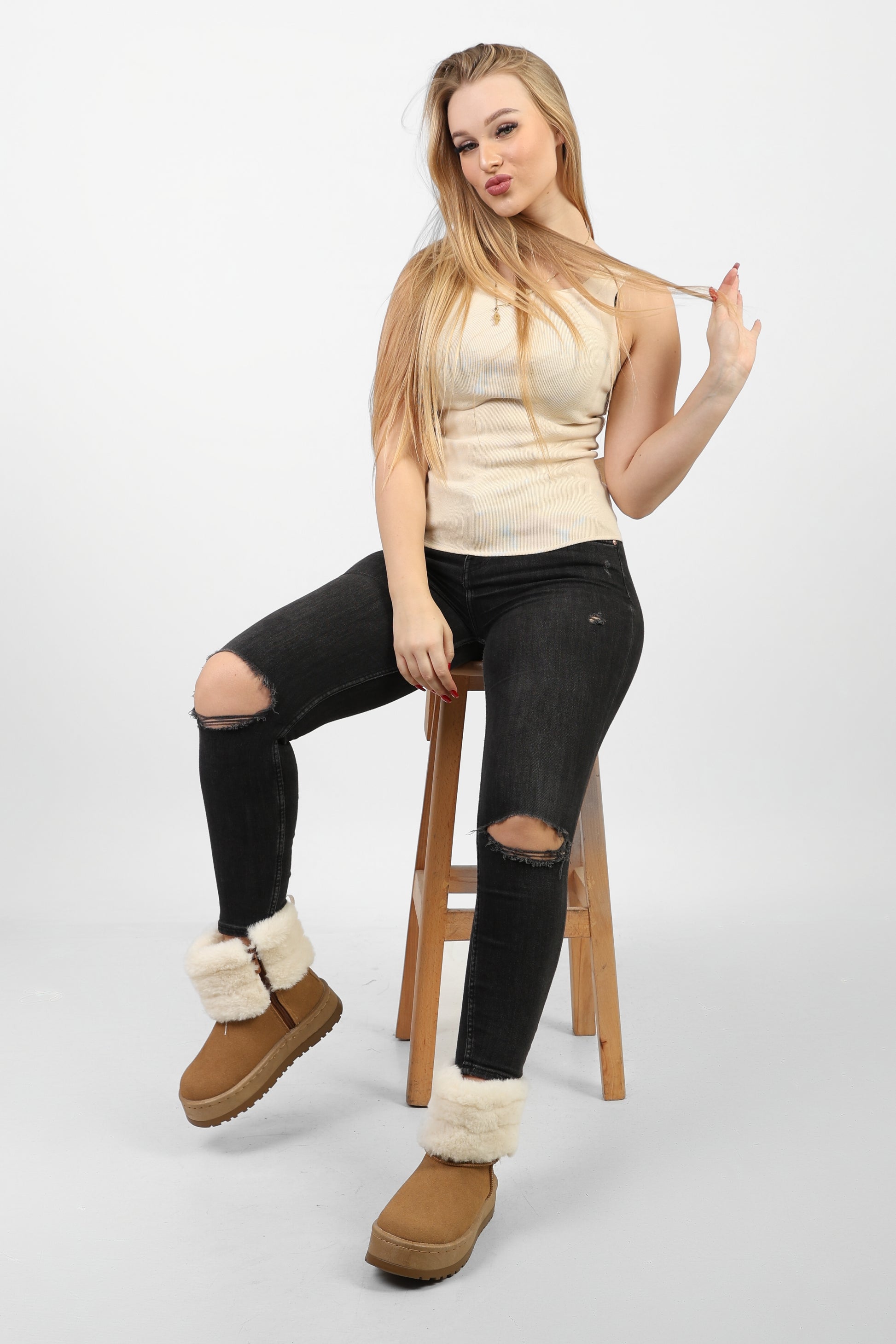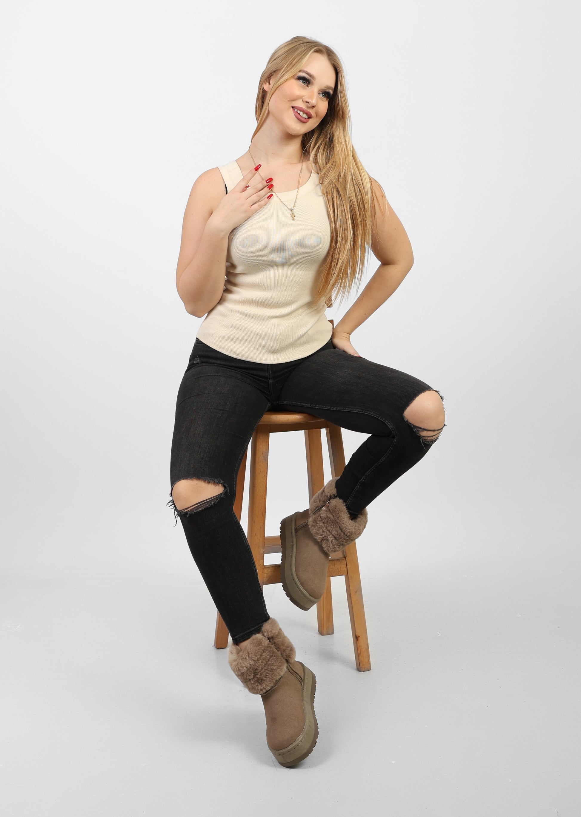 Keep your feet cozy all winter long with our Fur Uggs. Not just comfortable, but "ugg"-niquely stylish too! Perfect for keeping your toes warm during the chilly months. (Plus, they're named after a cuddly creature, what's not to love?!)