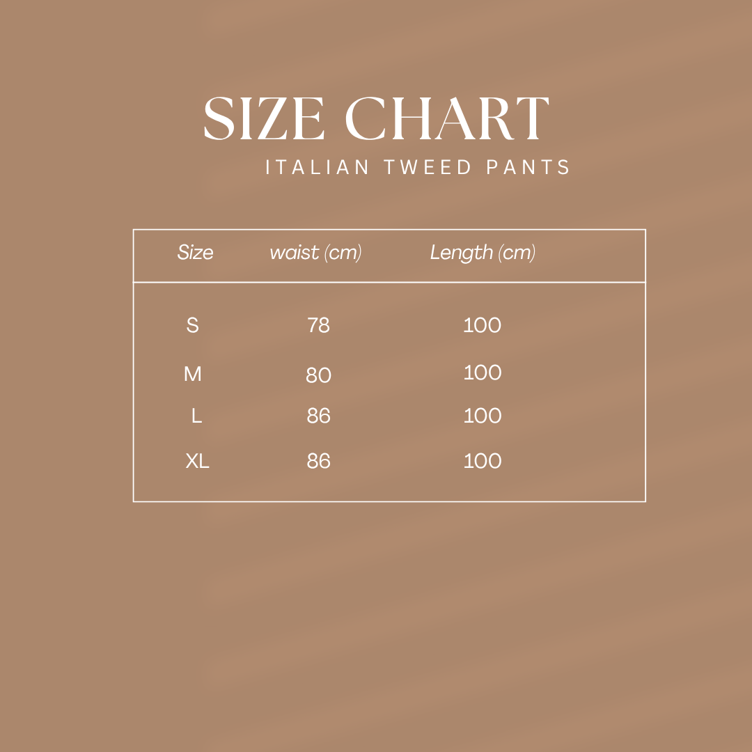 Introducing our Italian Tweed Pants - the perfect combination of style and comfort. With a luxurious Egyptian cotton lining, they fit like a dream and look beautiful when worn. These versatile pants can easily be dressed up or down, making them a must-have in any wardrobe.